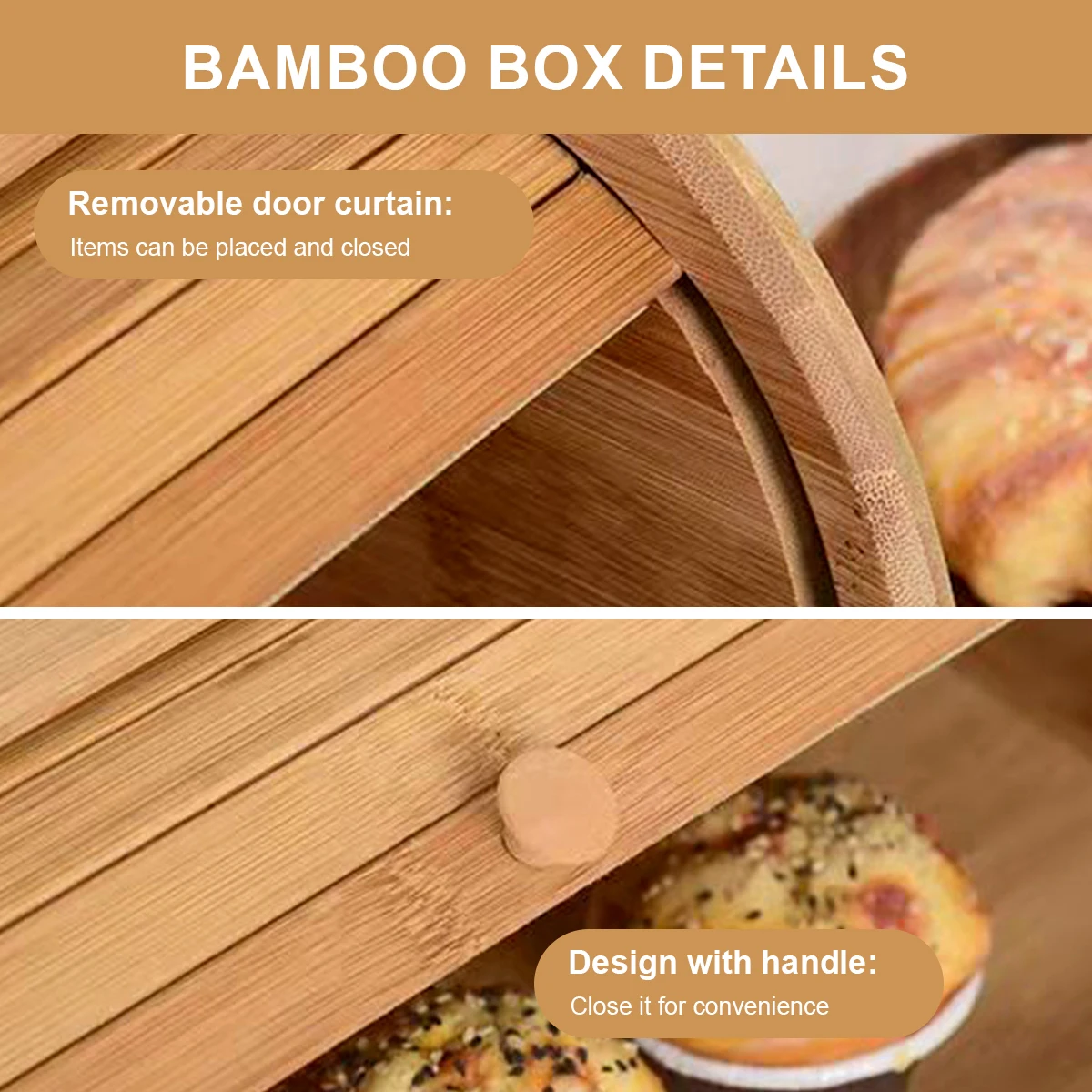 Organize your kitchen with this elegant bamboo bread storage box. Designed for countertops, it keeps your bread fresh while adding a touch of natural charm to your space. A durable and stylish solution for bread storage and organization!
